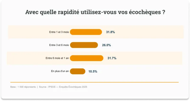 L’écochèque joue en effet un rôle incitatif. Plus de sept bénéficiaires sur dix (72 %) reconnaissent qu’il influence positivement leurs décisions d’achat en faveur de produits durables qu’ils n’auraient pas acquis sans cet avantage. En cas de suppression, 77 % des bénéficiaires se déclareraient très insatisfaits et considéreraient cette mesure comme une perte de salaire net, tandis que près de la moitié estiment que le dispositif devrait être renforcé.