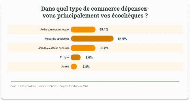 Au-delà de son impact sur les ménages, l’écochèque joue également un rôle important pour l’économie locale. Plus d’un tiers des bénéficiaires les dépensent dans des commerces de proximité, une proportion qui atteint 41 % chez les 18–34 ans. Pour de nombreux petits commerces, ces dépenses représentent une part non négligeable du chiffre d’affaires, en particulier dans les secteurs liés aux équipements durables.
